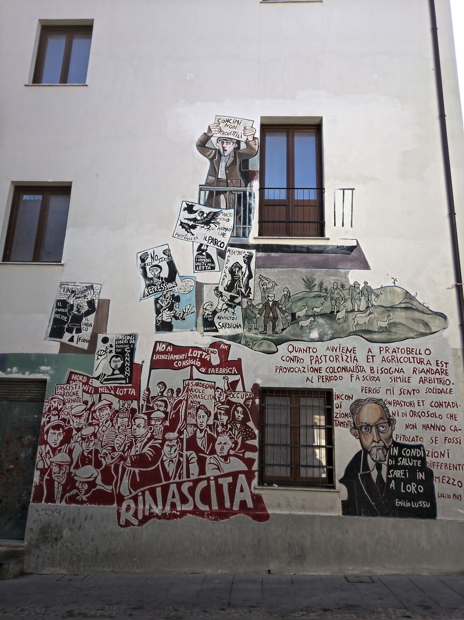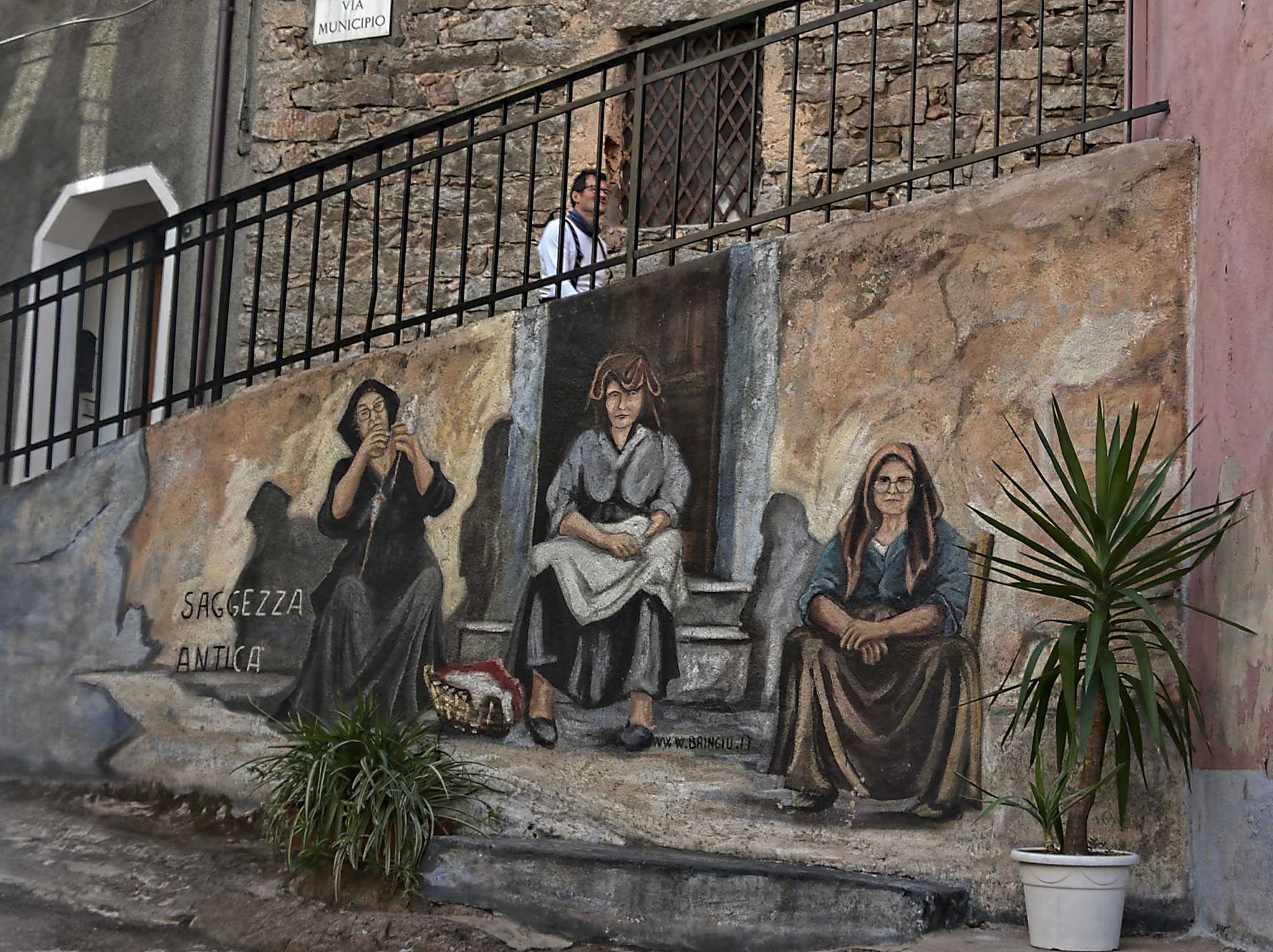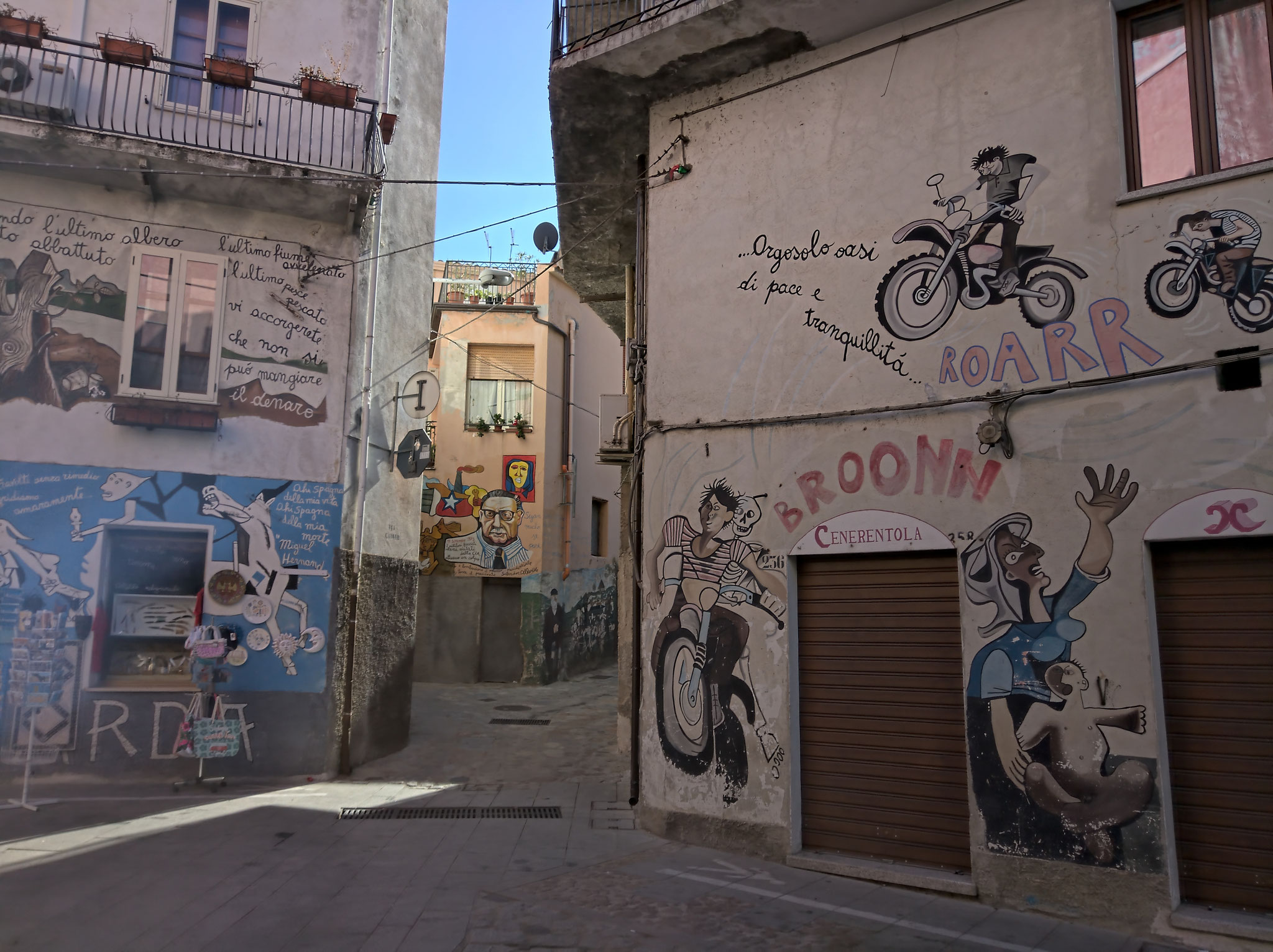Bemerkenswert war auch das nahe Dorf Orgosolo, einem ehemaligen "Räubernest" mit sehr zeit- und sozialkristischen Wandbemalungen sowie die "Roten Felsen" direkt in Arbatrax.